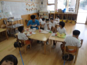 給食も一緒にに食べました