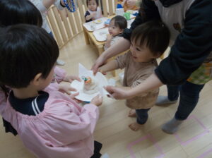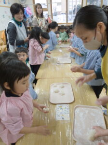 誤嚥防止の為、園では食べませんが、伝統行事の体験を行います。